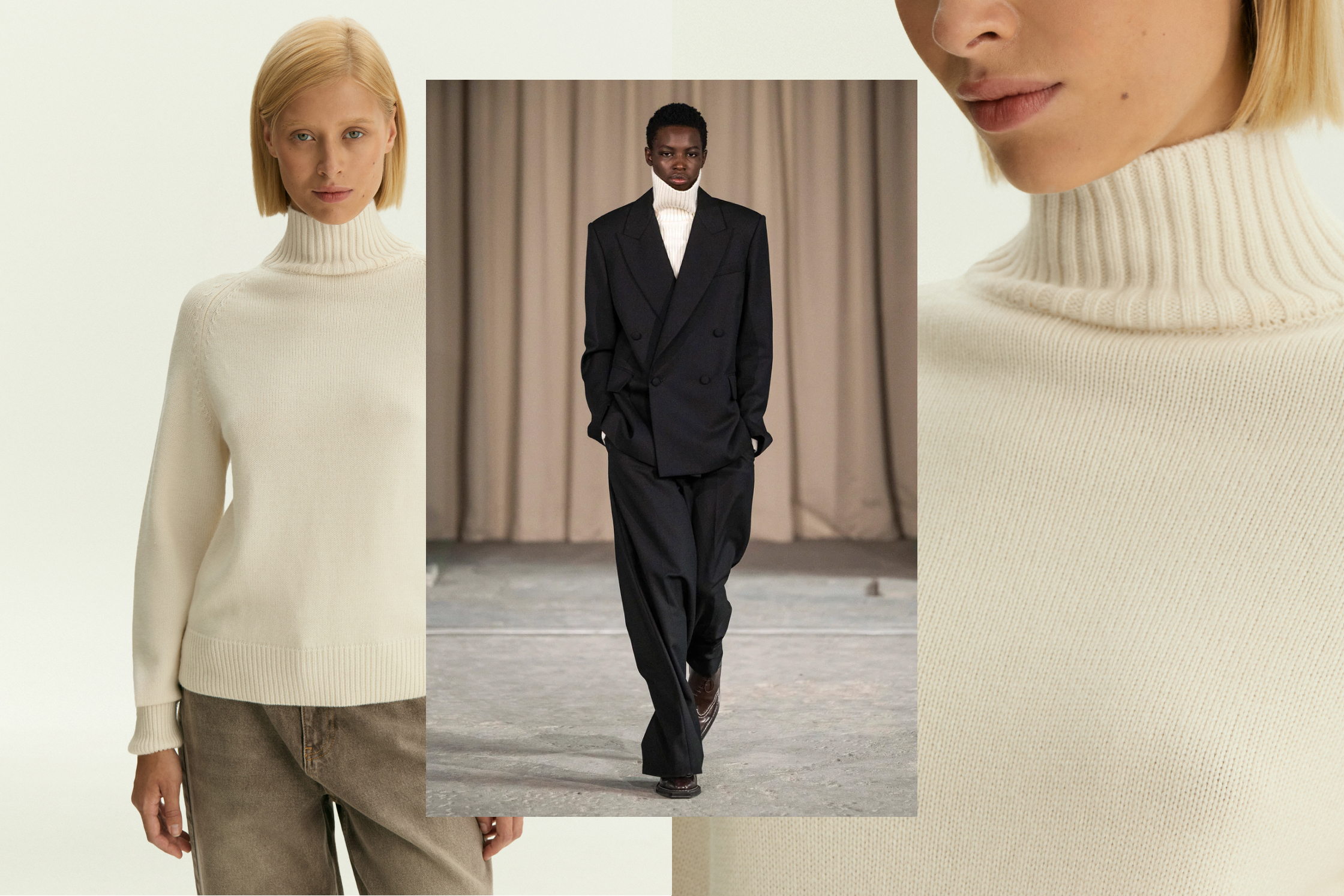 Вдохновляемся уютным образом от Mithridate и берём в осенне-зимний гардероб удобное сочетание костюма и свитера.В этом сезоне ещё больше внимания уделяется тактильно приятным фактурам: в составе свитеров стоит искать кашемир, ангору, альпаку.