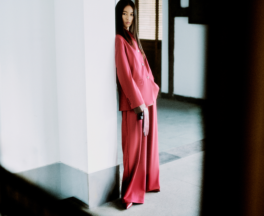 Яркий цвет, чёткая геометрия, плотная ткань и утончённые восточные мотивы этого костюма создают запоминающийся образ для торжественных и деловых выходов.