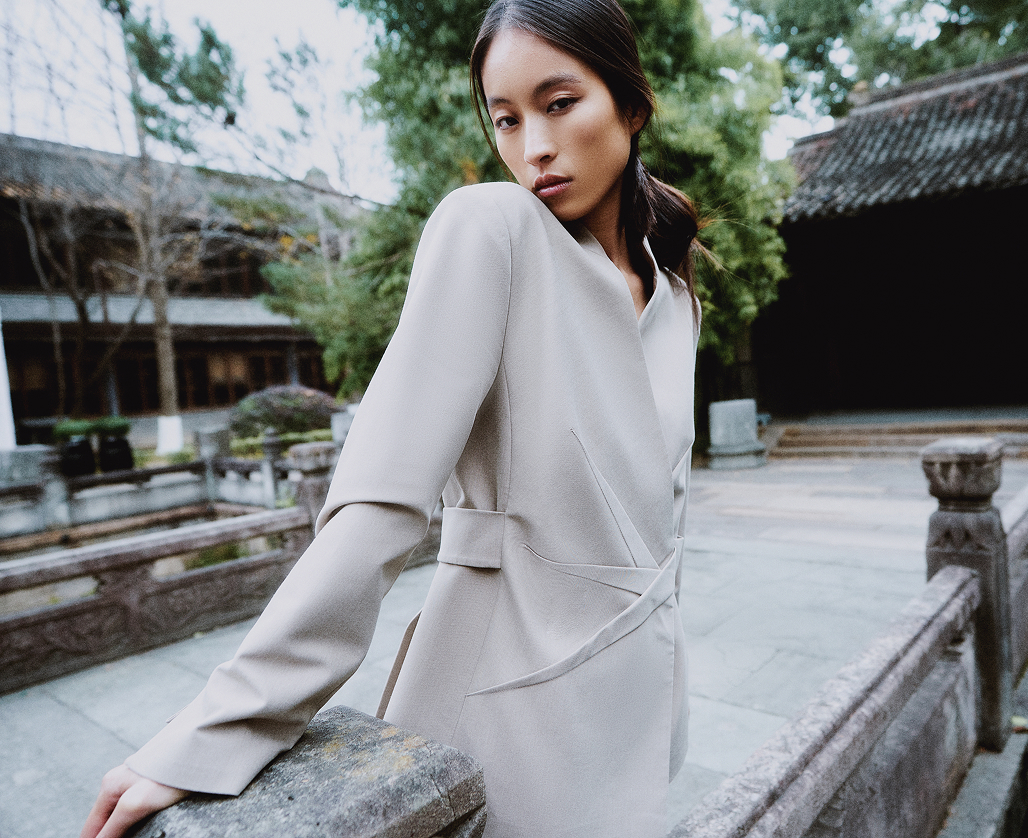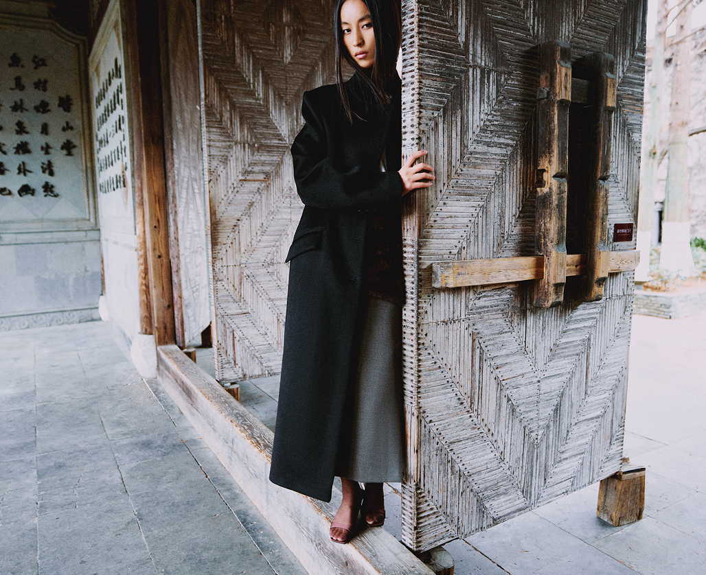 Сдержанная классика разбавлена остромодным трендом: сочетанием поднятого лацкана и стойки. Образ покажет ваше чутьё на важные детали, которые не бросаются в глаза.
