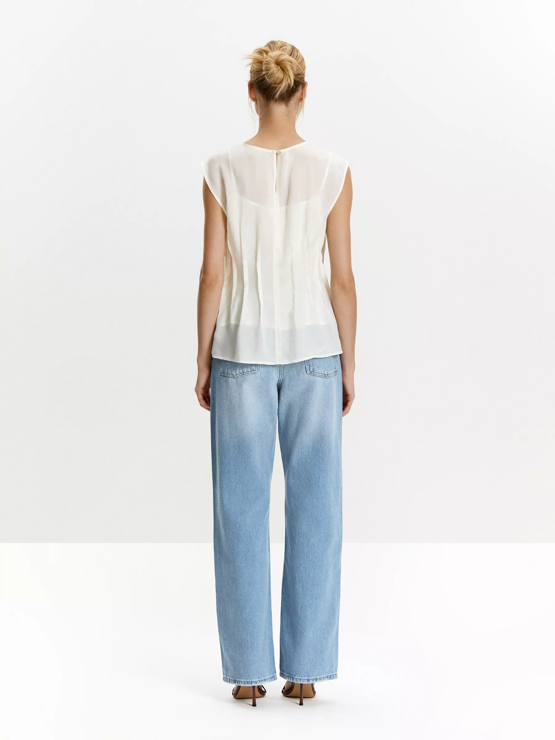 Полупрозрачный топ в молочном цвете станет любимой вещью в гардеробе.