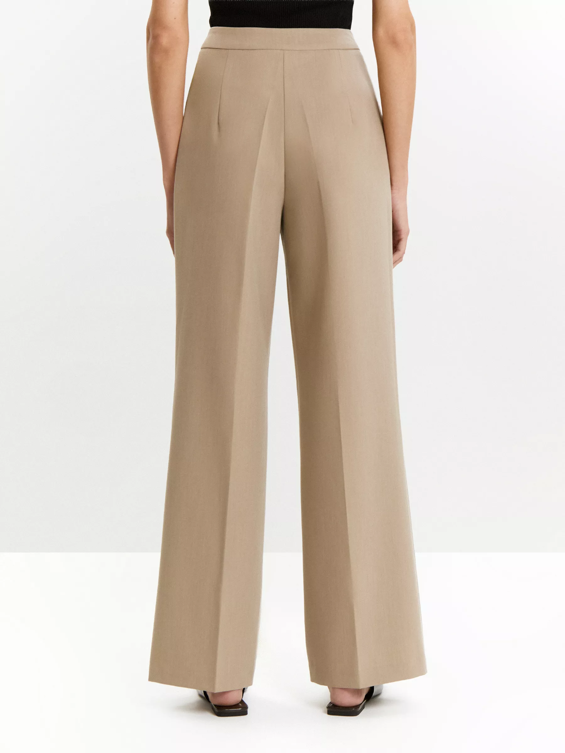 Потайные застёжки делают эту модель минималистичной и ещё более элегантной. Брюки имеют широкий крой и стандартную посадку.