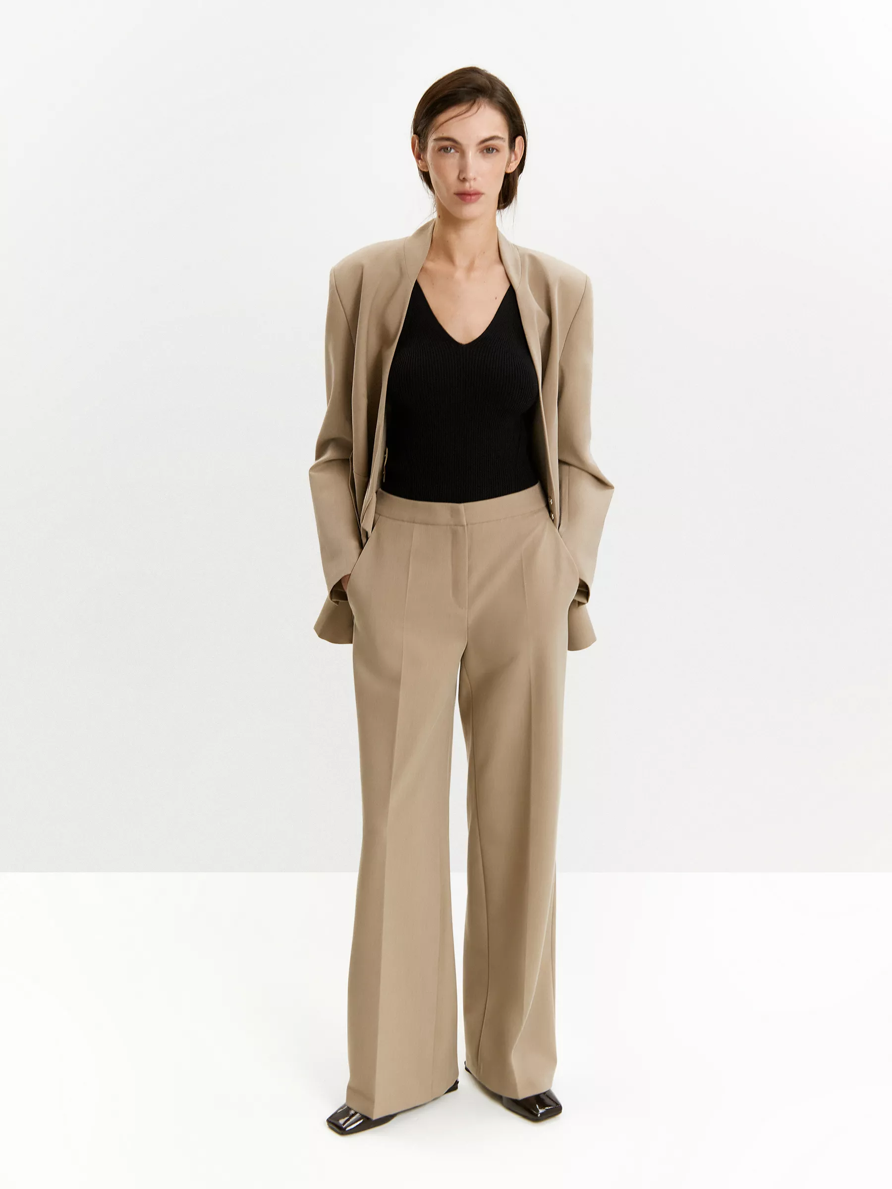 Брюки в офис или на выход в очень элегантном оттенке бежевого помогут всегда выглядеть стильно.