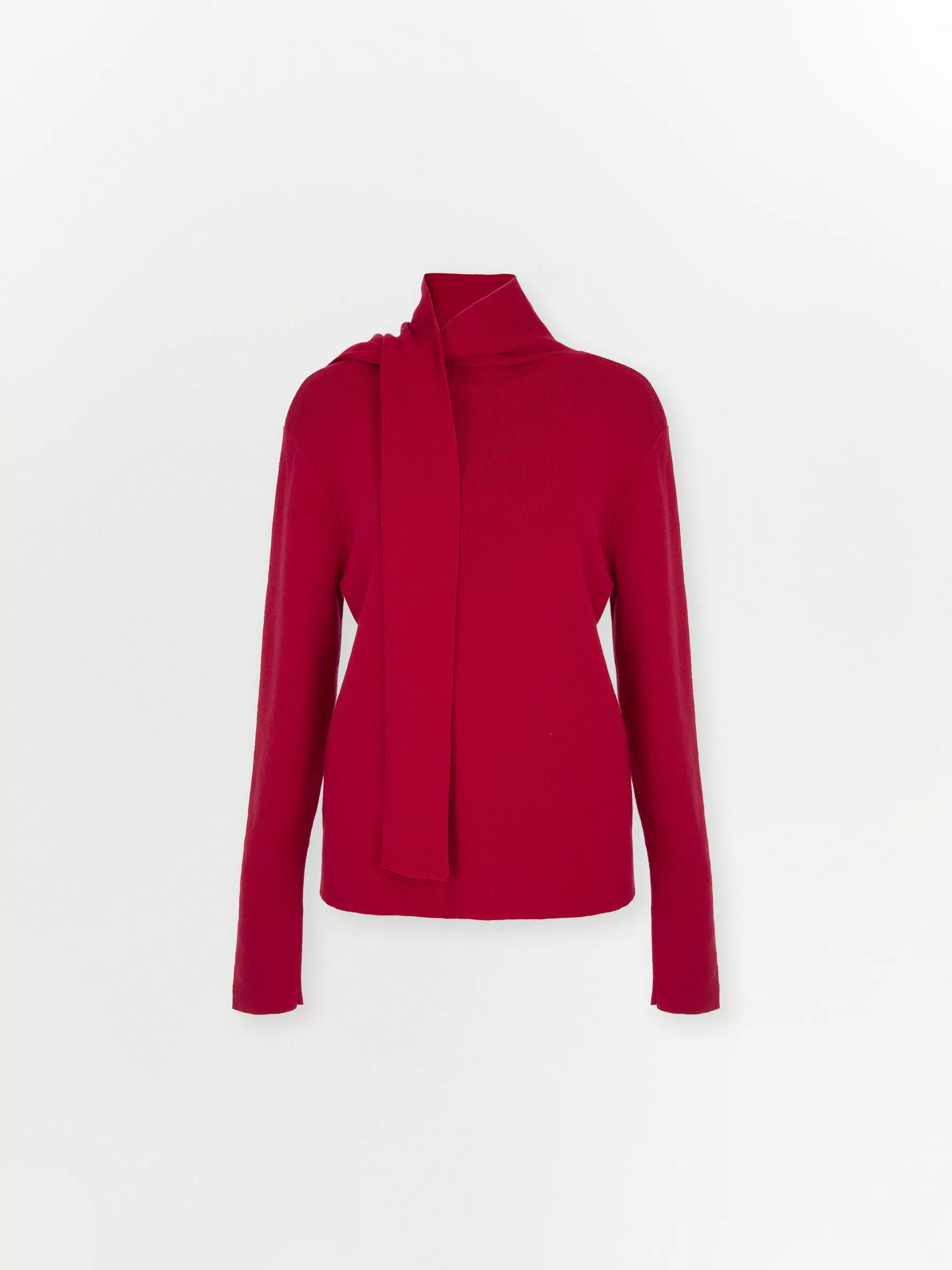 Всесезонный джемпер с оригинальным дизайном станет любимой вещью в гардеробе. Он сделан из хлопка с кашемиром — в нём будет приятно провести весь день. А яркий красный цвет добавит огонька будням и особым случаям.