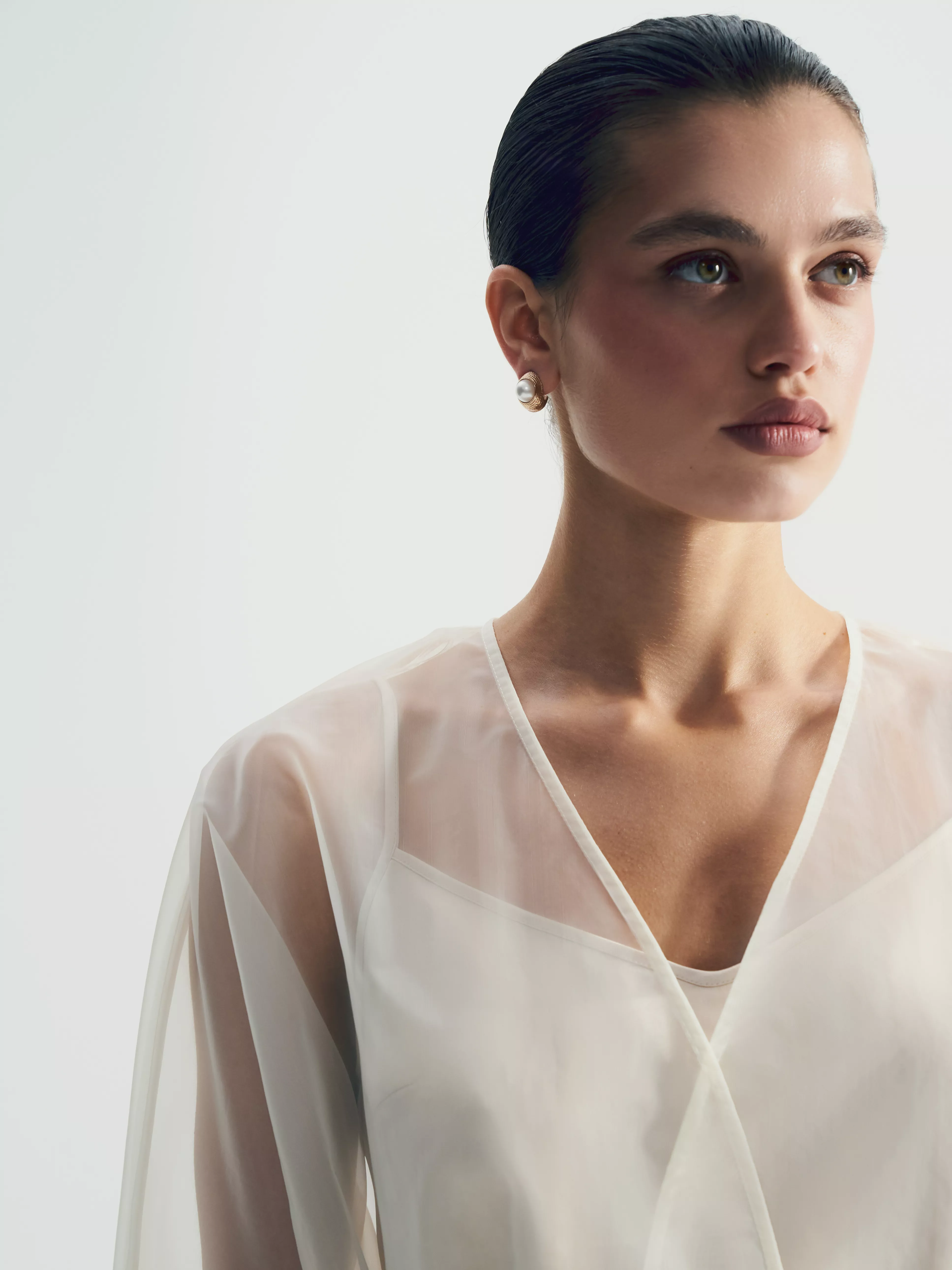 Кимоно в молочном цвете из слегка "хрустящей" плотной органзы подойдёт к празднику и не только. Дополнено широким поясом. Кимоно идёт без топа в комплекте, но подойдёт к любому топу в вашем гардеробе.