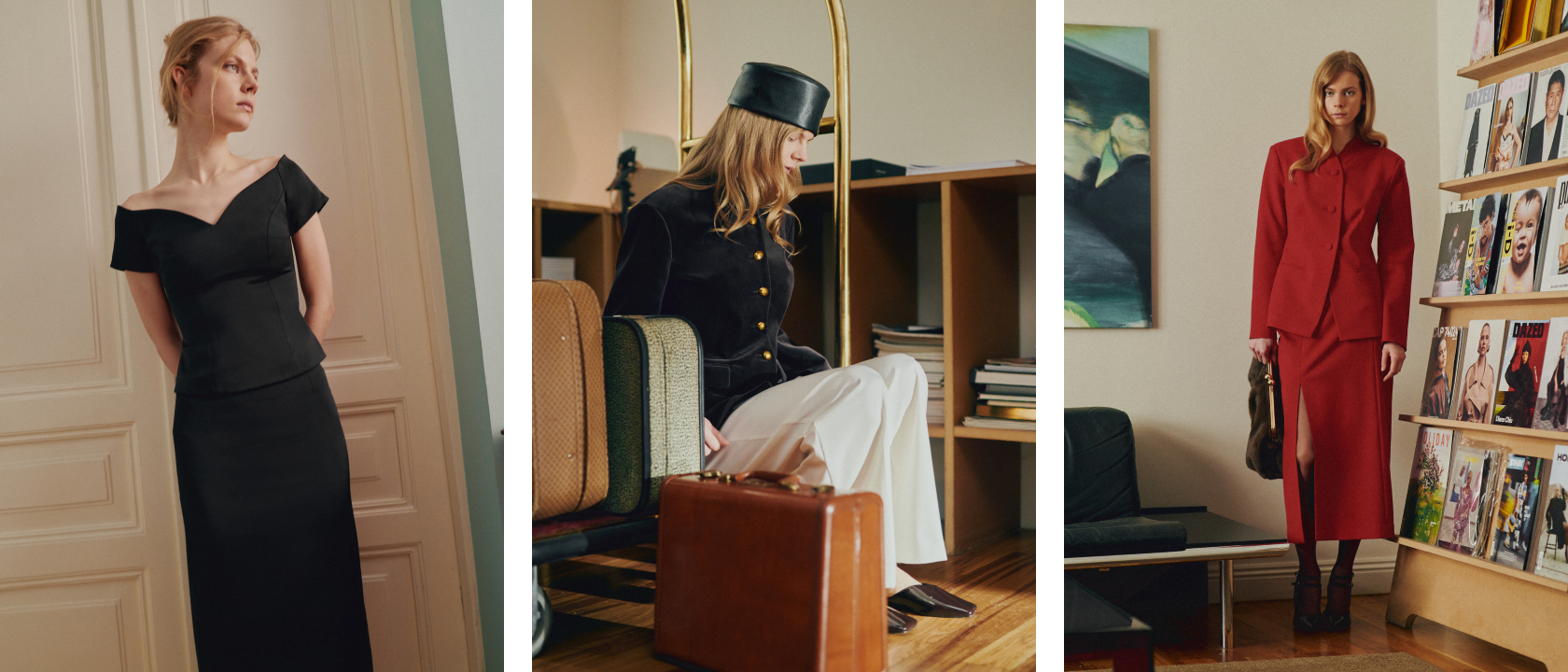 Каждая коллекция среди прочего включает в себя большой ассортимент костюмных групп. В них используются ткани с высоким содержанием вискозы, которые хорошо показывают себя в носке и держат форму. К холодному сезону появляются костюмы с содержанием шерсти, к тёплому — со льном и хлопком.