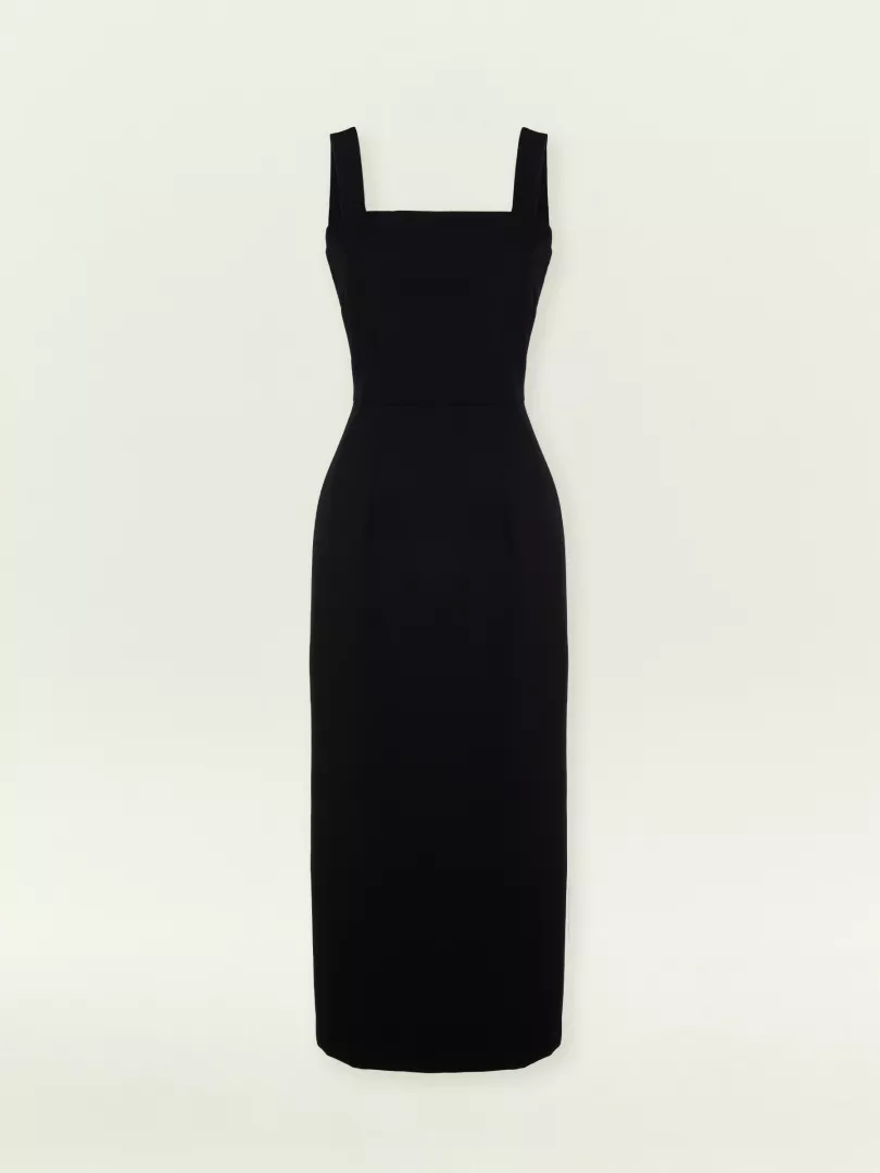 Незаменимое базовое платье в чёрном цвете. Тонкая и лёгкая ткань почти наполовину состоит из натуральной шерсти: то, что нужно на демисезон, прохладное лето, зиму. Платье одинаково хорошо и в офисных, и в коктейльных образах. Удобная модель без рукавов, на широких бретелях идеальна под жакеты. Открытая спина делает образ более эффектным. Приталенное платье-футляр в длине миди без лишнего декора поддержит дресс-код днём, подчеркнёт достоинства фигуры вечером. Вытачки визуально формируют и вытягивают силуэт, а отрезная талия корректирует область живота. Разрез со шлицей сзади усиливает динамику образа. Изделие застёгивается на молнию сзади. Платье может стать частью капсулы с топом и юбкой laine. Можно носить с тонкими лонгсливами нашей новой коллекции или любыми базовыми боди.