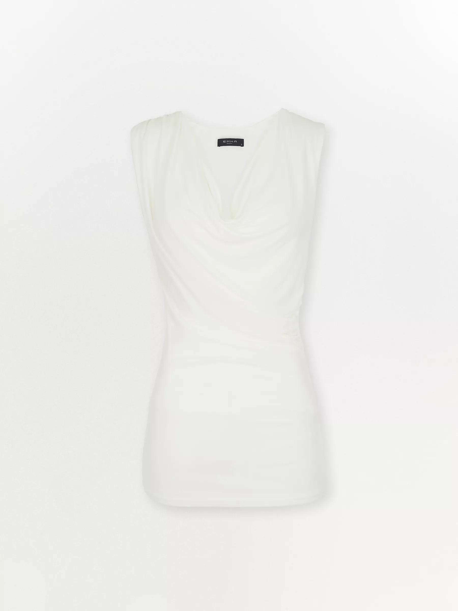 Незаменимая вещь в гардеробе. Элегантный приталенный топ с драпировкой в античном стиле красиво смотрится на обладательницах любой фигуры и любого роста. Вырез-водопад придаёт кэжуальным и выходным образам большую нарядность. За счёт лёгкой асимметрии драпировка выглядит ещё роскошнее, а одно плечо можно эффектно спустить. Топ выполнен из приятной к телу вискозы в молочном цвете. Сочетается с любым базовым низом.