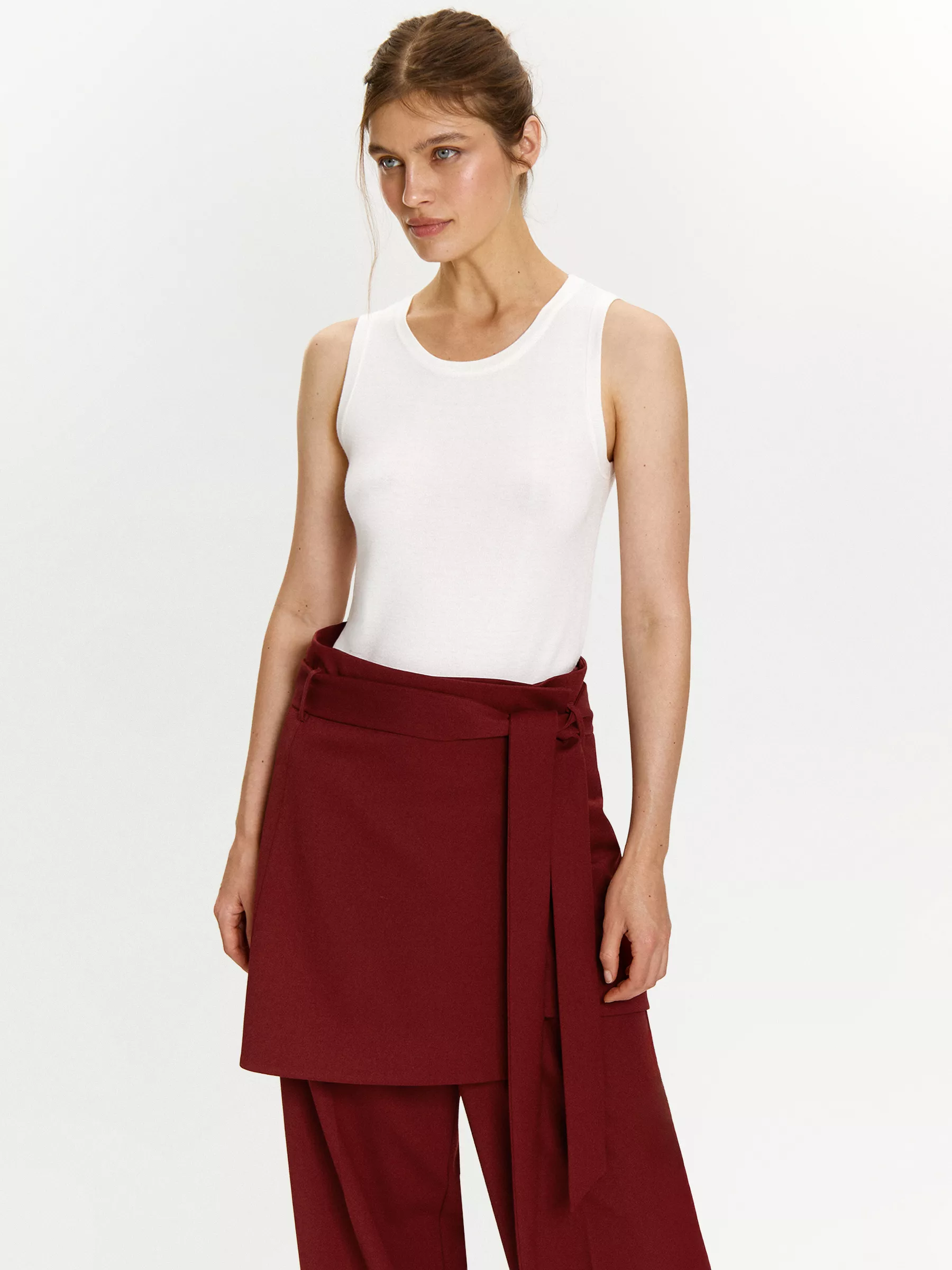 Будьте в тренде: стилизуйте юбку на запах с брюками. Получится волевой и актуальный образ в восточном стиле, с лёгкой отсылкой к самурайской тематике. Также юбку можно носить как накладную баску с платьями, чтобы подчеркнуть талию.